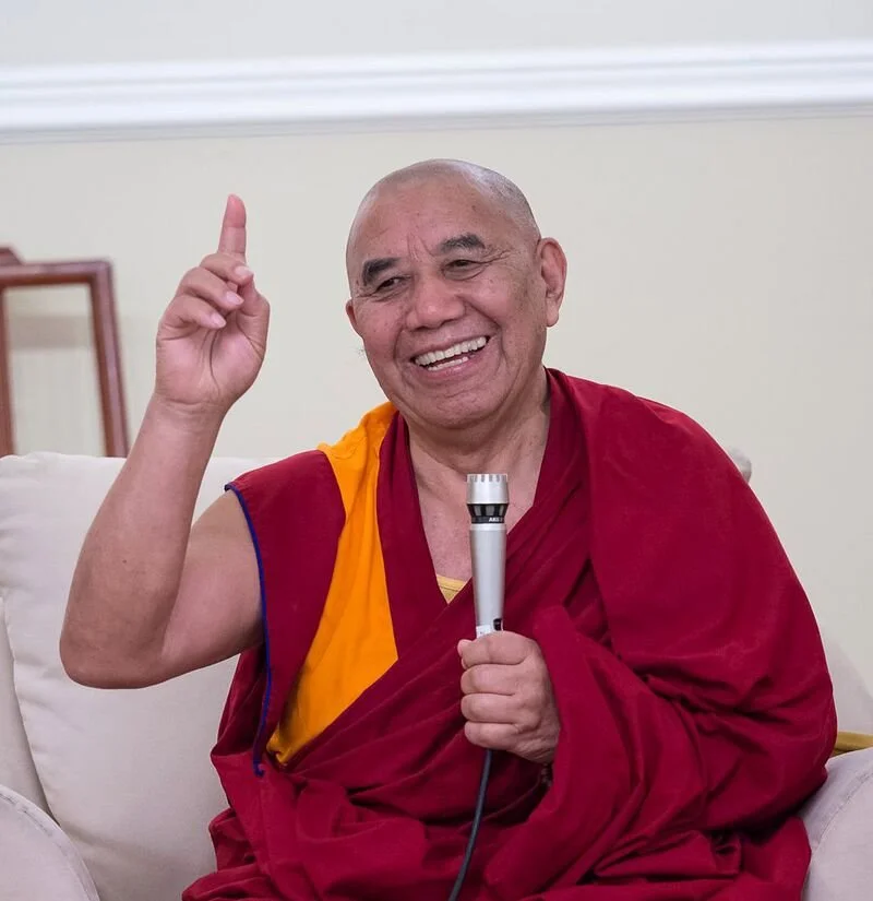 One very snowy winter day, Rinpoche and I were driving in northern Maine to attend a lecture he was to give at the Bangor Theological Seminary. It was back in the day when gas pumps weren’t equipped to accept credit cards, so I had to go inside the station to pay my bill (it was also in a time when people were moral enough that the station didn’t require me to pre-pay). While I was in the station, Rinpoche got out of the car and began washing my windshield, also clearing my headlights. There were a few people around, so they began to gather, taking a look at this unusual person, dressed in maroon robes, with his dark skin and shaved head. As they gawked, Rinpoche smiled broadly and began hamming-it-up, gesturing broadly with the windshield washer, performing ballet-like moves. People were laughing and shaking their heads when I came outside, then a young woman walked up to me to ask, “Is he a Buddhist monk?” When I answered in the affirmative, she followed up by saying, “Then why are you letting him wash your windshield!?” I told her, “Frankly, I wouldn’t be able to stop him. He likes to help out. Yesterday he shoveled my driveway!” She was nonplussed, but the fact simply remained. Rinpoche sees helping out as a way to remember he’s just a person.